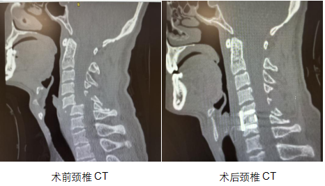完善术前准备后,患者平稳转入手术室。针对脊髓损伤患者可能出现的呼吸抑制风险,麻醉科团队采用“清醒气管插管”技术,确保气道安全;脊柱外科四病区手术团队则凭借精湛的手术技术与丰富经验,仅用70分钟便顺利完成骨折牵引复位、脊髓彻底减压、植骨融合及内固定操作。整个手术过程出血量不足20ml,脱位颈椎复位精准,脊髓受压解除彻底。术后患者生命体征平稳,即刻转入 ICU 进行术后监护,为脊髓功能恢复筑牢术后保障。