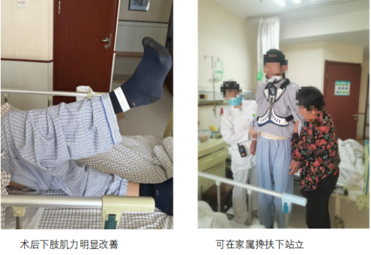 术后4周,患者康复成效显著:四肢感觉完全正常,双上肢伸屈肘、抬腕屈腕肌力提升至 4-5 级,双手握力达 3 级;双下肢肌力达 4-5 级,可完成站立,生活自理能力逐步恢复。